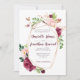 Rosas de água, peonias, e convites para casamentos geométricos de verde, cor-de-rosa-claro e brilhante. As caixas de texto são fáceis de personalizar com suas próprias informações. O texto é uma mistura de fontes modernas e ornamentados de caligrafia em burgundy e cinzas. A parte de trás do cartão está escuro como burgundy.