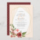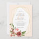 Um convite para casamento botânico elegante e moderno com uma bela peça de centro geométrico de ouro rodeada por folhas de aquarela e flores em tons de rosa-pincel e burgundy. A cor de fundo, como mostrado, é um rosa pálido e pálido, mas você pode selecionar uma cor personalizada para corresponder ao seu tema de casamento.