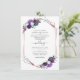 Convite para casamento em verde roxo roxo geométrico Você pode facilmente editar com seus detalhes de casamento clicando no botão "Personalizar". Apresentando um design moderno com um quadro geométrico rosa dourado, floração roxa e tipografia popular em fundo branco.
