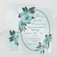 Convite de casamento único com flores azuis românticas e folhas verdes em uma bela estrutura geométrica oval. PARA MAIS PRODUTOS CORRESPONDENTES, clique na coleção acima ou entre em contato comigo.