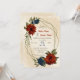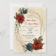 Convite de casamento único com laranja romântico queimado e flores azuis marinhos e folhas verdes em uma bela estrutura geométrica. PARA MAIS PRODUTOS CORRESPONDENTES, clique na coleção acima ou entre em contato comigo.