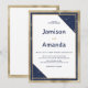 Este marinho de luxo, azul, branco e borda geométrica de confetti com brilho dourado é inspirado pelo simples e elegante era, mas com sutis pistas de influência moderna. Ele apresenta um brilho azul brilhante de marinho e brilho dourado em um fundo branco. Este design clássico e de luxo será um grande sucesso para todos os seus convidados. Todas as designs são impressas.