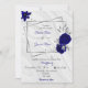 elegante luxo flores azuis reais com algumas cinzas de prata geométricas botânicas contra fundo de mármore convite para casamento O brilho e as folhas são simulados