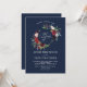 Nossa design apresenta lindas flores cor-de-rosa-esbranquiçadas, arrojadas, vermelhas, azuis-marinho, folhas verdes como uma elegante armação, elegante caligrafia "o casamento de", tudo sobre fundo azul marinho. Na parte de trás, um quadro floral com noiva e iniciais nobres. Use a ferramenta Personalizar para adicionar suas informações. Itens correspondentes podem ser encontrados na minha Coleção de Flores Azuis da Borgonha.