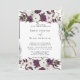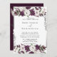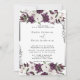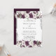 Design apresenta um elemento floral impresso em tons roxos, violetas, lilases e brancos sobre folhas de folhagem rosas e pedras sobre um fundo de aquarela roxo. Excelente para as comemorações do casamento!