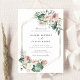 Palma Tropical Greenery Blush Convite Geométrico Dourado Para Casamento. Boho Dred Palm Blush Tropical Flowers Invitation Modelo