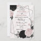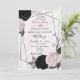 elegantes flores pretas e cor-de-rosa macia com folhas de cinza convite de casamento geométrico Os detalhes da brilha são simulados