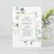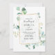 Este Convite de Casamento moderno apresenta uma estrutura de ouro opaca adornada com uma folhagem de eucalipto com aquarela e foi emparelhada com uma letra de caligrafia branca e uma letra de serif clássica, que pode ser alterada conforme necessário. Para fazer alterações avançadas, vá para a opção "Clique para personalizar mais" em Personalizar este modelo.