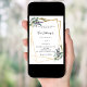 Um fundo branco na moda na frente. Decorado com eucalipto e lavandas florais. Um quadro geométrico dourado. Personalize e adicione seus nomes e detalhes. Fundo: fundo colorido de cinza verde.