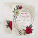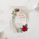 Convite de casamento único com flores românticas vermelhas e amarelas pálidas e folhas verdes em uma bela estrutura geométrica. PARA MAIS PRODUTOS CORRESPONDENTES, clique na coleção acima ou entre em contato comigo.