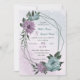Convite de casamento único com flores roxas e azuis românticas e folhas verdes em um belo quadro geométrico. PARA MAIS PRODUTOS CORRESPONDENTES, clique na coleção acima ou entre em contato comigo.