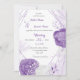 Cartão de convite romântico de casamento com flores brancas e roxas em um quadro geométrico bonito. Os detalhes de brilho são simulados. Ele é adequado para o casamento e as festas de noivado. PARA MAIS PRODUTOS CORRESPONDENTES, entre em contato comigo.
