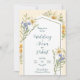 Celebre sua história de amor com este Convite Geométrico de Casamento de Flores Selvagens. Enquadrada por uma fronteira geométrica moderna adornada com delicadas flores pintadas à mão em amarelos leves, laranjas vibrantes e blues gentis, este design combina lindamente a estrutura com elegância natural. O equilíbrio de linhas nítidas e flores de aquarela cria um pano de fundo sofisticado para seus detalhes de casamento. Impresso em estoque de cartão premium, este convite é a escolha perfeita para casais que buscam uma maneira nova, romântica e na moda para convidar convidados para seu dia especial.