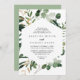 Este convite de casamento de diamantes de folhagem geométrica tropical de ouro é perfeito para um casamento rústico. A design apresenta lindamente cores aquáticas, pintadas à mão, ouro tropical de verão e folhas verdes, adorando quadros geométricos.