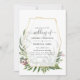 Convite de casamento de florestas verde, com ervas selvagens, samambaias, folhas e eucalipto, com estrutura geométrica de ouro personalizável para suas especificidades de evento.