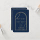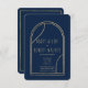 Um elegante marinho azul, e um convite de Casamento de Arca Geométrica de Ouro. Este convite de casamento azul e na moda é perfeito para qualquer garota chique sofisticada. Este design é ideal para um evento de festa elegante e de tendências. Personalize este design com sua própria mensagem e informações personalizadas. Todas as designs são impressas.