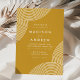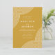 Convites modernos de casamento com linhas geométricas brancas giradas nos cantos com fundo amarelo-mostarda. Personalize os convites de casamento preto e branco adicionando seus nomes e detalhes de casamento. Os convites modernos para casamento de boho invertem para mostrar uma mostarda.