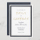 Mínimos brancos, marinhos azuis e convites geométricos de Casamento dourados. Este simples convite elegante para o casamento é perfeito para qualquer design de moça elegante e sofisticada é perfeito para a festa da moda e na moda. Personalize este design com sua própria mensagem e informações personalizadas. Todas as designs são impressas.