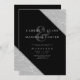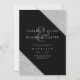 Digitalização de cinzas clássicas e carrapatos com elegantes convites para casamento geométricos preto e prateado.