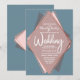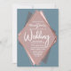 Elegante, chic, e moderno com uma vibração retrorreflectora, esboços impressos em forma de diamante geométrico rosa de ouro em azul empoeirado, mauve, rosa e carvão de cinza, recorte de diamante, convites para casamento. Este design clássico e sofisticado é perfeito para o casal de competição de tendências e na moda. Personalize com sua própria mensagem na frente, assim como um monograma personalizado inicial no verso. Todas as impressão de fotos.