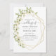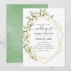 A moda verde e branca deixa o convite para casamento com a moldura geométrica dourada e a elegante tipografia de caligrafia.