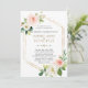 Design de luxo com flores cor-de-rosa, pinceladas, natas, aquarelas, falsos quadros de ouro, divisores florais; nas iniciais traseiras e na amperança floral. Use a ferramenta Personalizar para adicionar suas informações. Para obter itens correspondentes, visite minha Coleção de Flores de Blush Exclusivas.