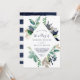 Este convite de casamento geométrico náutico moderno de diamante verde é perfeito para um casamento de cruzeiro ou praia. A design botânica apresenta lindas folhas verdes com sotaques de marinho e estrelas-do-mar douradas, dando-lhe uma vibração da praia.