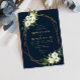 Um design floreal branco de marfim moderno com uma estrutura geométrica. As lindas flores verdes e brancas complementam bem o fundo azul marinho. Um bom design para o seu casamento de verão. Você pode alterar o texto, o tamanho do texto, a cor e a fonte neste modelo. O plano de fundo do Marinho também pode ser alterado.
