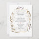 Convite de casamento de Trendy com verde com quadro geométrico dourado e lavagem de cor-de-água rosa pincelada inversa personalizável para suas especificações de evento.