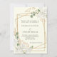 Um fundo de marfim decorado com flores brancas e uma falsa estrutura geométrica dourada. Personalize e adicione seus nomes e detalhes.
