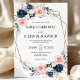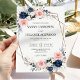 Traga um pouco de romance moderno para o seu grande dia com este convite de casamento floral azul e marinho. Rosas suaves e flores profundas de marinho são maravilhosamente organizadas em torno de uma elegante estrutura geométrica dourada, acrescentando uma sensação de na moda fresca. Esta design funciona perfeitamente para casamentos de jardim, cerimônias de vinhedos, ou qualquer celebração que misture os florais de eternos com uma borda moderna. Seus convidados adorarão receber um convite que se sinta clássico e contemporâneo, definindo o tom para seu dia inesquecível.