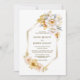 Convide seus amigos e entes queridos para o seu casamento para testemunhar e celebrar o início de sua jornada ao longo da vida com este elegante convite de casamento geométrico floral branco e ouro. O texto personalizável permite adicionar sem esforço os nomes da noiva e do noivo, a data do casamento e os detalhes necessários de sua celebração. Uma variedade de tipos de papel e estilos de canto estão disponíveis para seus convites exclusivos, juntamente com a opção de download se você preferir um formato digital.