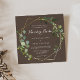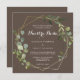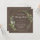 Este convite de casamento espanhol verde-marrom-dourado geométrico é perfeito para um casamento tropical. A design apresenta lindas folhas verdes pintadas manualmente em um fundo azul escuro, enfeitando uma armação geométrica dourada.
