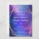 Convites únicos, artísticos e criativos de Casamento. Linhas de ouro geométricas e formas de cristal, lindas nebulosas roxas e azuis no espaço exterior pintaram trabalho de arte de cor d'água com estrelas noturnas num céu noturno cristalino. Perfeito para uma cerimônia religiosa espiritual ou moderna e para uma celebração. A nebulosa na moda arco-íris contrasta com as constelações geométricas e com a galáxia espacial externa. Excelente para o fã de astronomia que ama a lua e o universo cósmico estrelado.