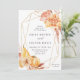Este convite para o casamento inclui flores de aquarela rústicas e abóboras em laranja queimada, ouro, terracota, burgundy, blush, beige e grama-pampas marrom com estrutura geométrica falsa de ouro. Para personalização mais avançada deste design, clique no link "personalizar mais". Itens correspondentes também estão disponíveis.