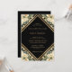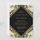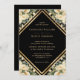 Convite floral de casamento elegante, preto, marfim e ouro, com detalhes de casamento, dentro de uma estrutura geométrica de ouro e adornado com rosas de marfim/creme e confete de ouro. Itens correspondentes disponíveis.