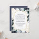 Convites Casamento Geométrico Dourado de Peônia Azul Rústic
