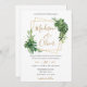 Este convite de casamento moderno chic apresenta uma bela folhagem tropical aquática e detalhes dourados. Personalize-o com seus detalhes de forma fácil e rápida, basta pressionar o botão personalizar para reorganizar e formatar o estilo e a colocação do texto. c) O Feliz Cat Studio