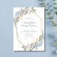 Romântica, cor d'água, florais azuis empoeirados e folhas em convites de casamento de quadro geométrico dourado. Adicione seus detalhes de casamento, mude cores de fontes, tamanhos ou estilos de fontes a este convite botânico moderno. Este design elegante é ideal para casamentos de primavera e verão.