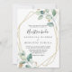 Este convite de casamento para o eucalipto nuestra de ouro geométrico é perfeito para um casamento rústico. Este design artístico apresenta ouro aquoso desenhado à mão e folhagem verde enfeitando uma armação geométrica, inspirando beleza natural.