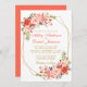Convites Casamento Geométrico Dourado Floral de Coral Moder