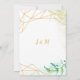 Seu casamento ficará fabuloso neste design de ouro geométrico cercado de verde e flores cor-de-rosa macio no mais macio dos fundos de aquarela. O dorso apresenta linhas geométricas modernas e quantidade mínima de verde para unir tudo. O modelo é fácil de personalizar com suas próprias informações usando uma combinação de fontes modernas e caligráficas. Se você quiser este design em um produto correspondente, envie um e-mail para shutterbug600@yahoo.com. Certifique-se de que inclui a ligação a este convite na sua correspondência. Gráficos por OctopusArtis.etsy.com (http://octopusartis.etsy.com)