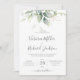 Belo convite para o casamento, com aquarela eucalipto e folhas de ouro.