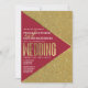 Este convite de casamento elegante e chique é perfeito para o casal contemporâneo. Ele apresenta um falso brilho brilhante impresso em ouro e uma folha de ouro esboçada design de triângulo geométrico sobre um simples fundo vermelho pimenta-do-pimenta com falso padrão tipografia de folha de ouro personalizada. É um design de luxo glamouroso, sofisticado e único para seu evento especial!