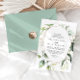 Este convite de casamento de ouro elegante e geométrico para diamantes é perfeito para um casamento simples. O design apresenta folhas de eucalipto verde botânico pintadas manualmente, enfeitando uma armação geométrica dourada.