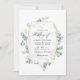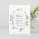 Convite de casamento herbário de eucalipto florestal selvagem com estrutura geométrica dourada concebida para ser rápida e facilmente personalizada de acordo com as especificações do seu evento. Ideal para qualquer tema ou casamento de jardim. Os DETALHES CONVIDADOS no verso são opcionais. Se você a remover, role para baixo até a parte inferior de "Personalizar este modelo" e clique em "Editar usando a ferramenta Design". Na Ferramenta Design, você pode editar, dimensionar, excluir ou mover qualquer texto ou design elementos desejados.