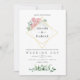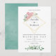 Trendy geométrico eucalipto verde e rosas cor-de-rosa pinceladas convite para casamento com moldura geométrica dourada e lavagem de cor d'água da menta inversa.