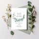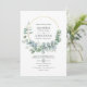 O convite de casamento para o eucalipto da floresta verde com moldura geométrica dourada e lavagem com aquarela prateada são personalizáveis de acordo com as suas especificações de evento.