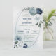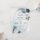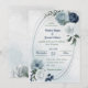 Bonito convite botânico para casamento, com flores brancas românticas, azuis empoeiradas e marinhos azuis, com folhas verdes em bonito estrutura geométrica. É adequado tanto para os convites para o casamento como para o noivado. PARA MAIS PRODUTO CORRESPONDENTE, clique na coleção acima ou entre em contato comigo.