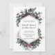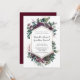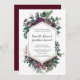 Moldura geométrica de ouro rosa, rodeada de flores de cor d'água de estilo rústico e verde verde em cores de burgundy, cinza e verde-escuro. A parte de trás do cartão é burgundy. As caixas de texto são fáceis de personalizar com suas próprias informações.